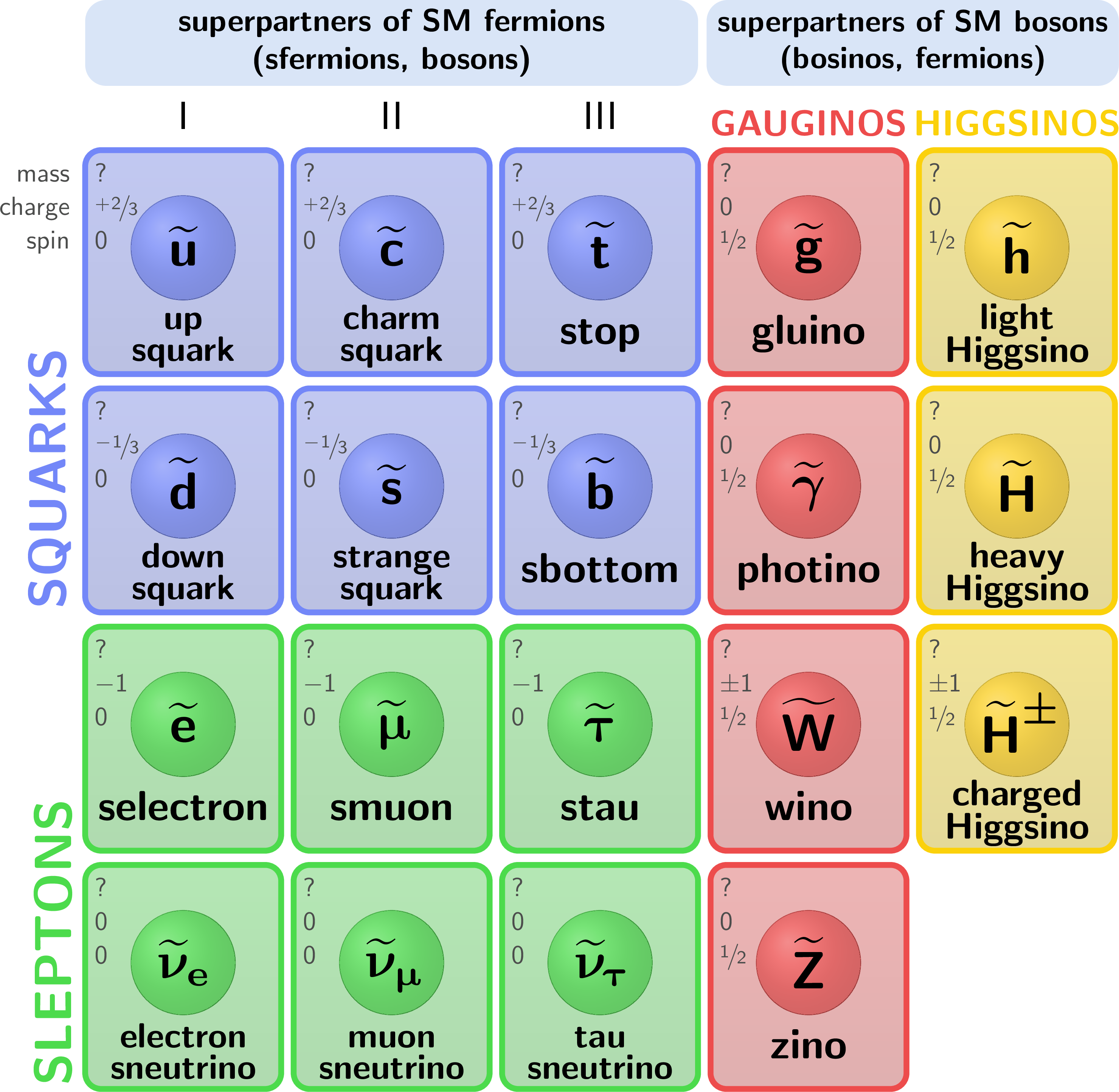 Supersymmetry (SUSY) partner particles in the Minimal Supersymmetric Standard Model (MSSM):SM_particles-007.png